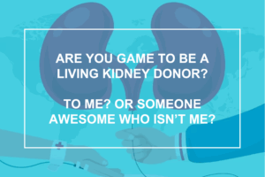 Are You Game to be a Living Kidney Donor? To me? Or someone awesome who isn’t me?